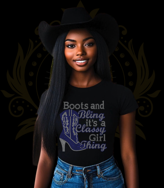 BOOTS AND BLING SHORT SLEEVE RHINESTONE T-SHIRT